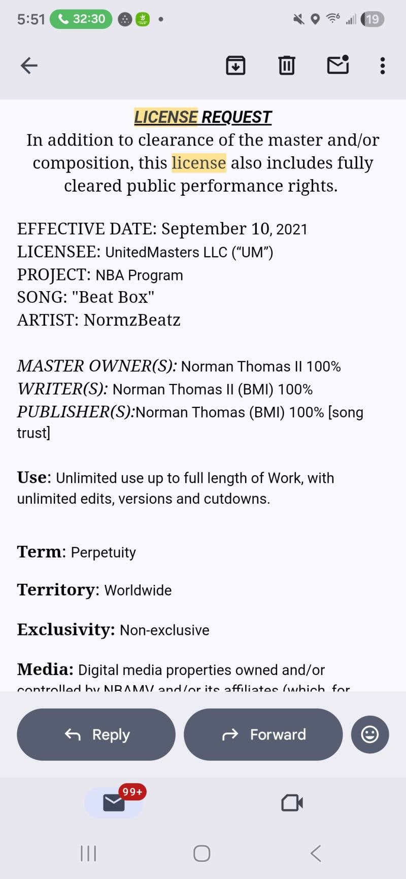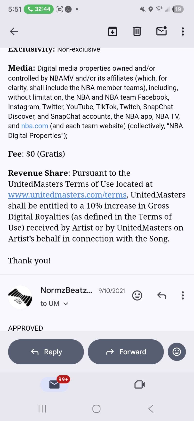 This is what a United Mastes Licensing Agreement looks like. Previous one I had from the NBA program. My beats were used in many NBA related content videos but there is no payment. Just mainly to get your name out and build your brand from what I can tell.